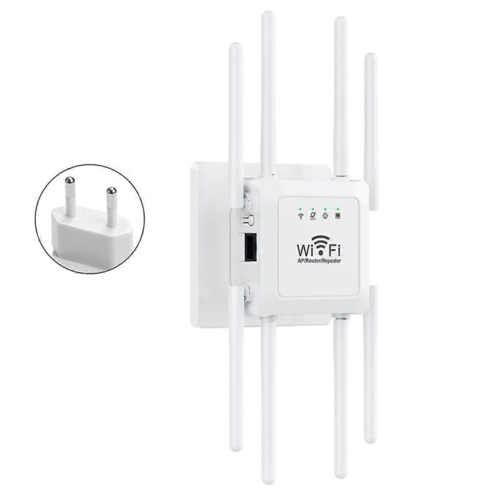 Amplificator WiFi 300Mbps cu 8 antene externe, moduri Repeater/Router/AP și port LAN. Extinde semnalul wireless în locuință sau birou, oferind conexiune stabilă și sigură.