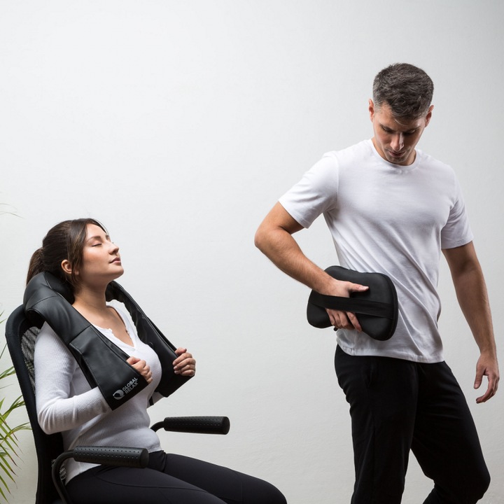 Designul ergonomic permite utilizarea în zona gâtului, umerilor, spatelui sau lombar. Alimentarea duală 220V și 12V face posibilă utilizarea atât acasă, cât și în mașină.