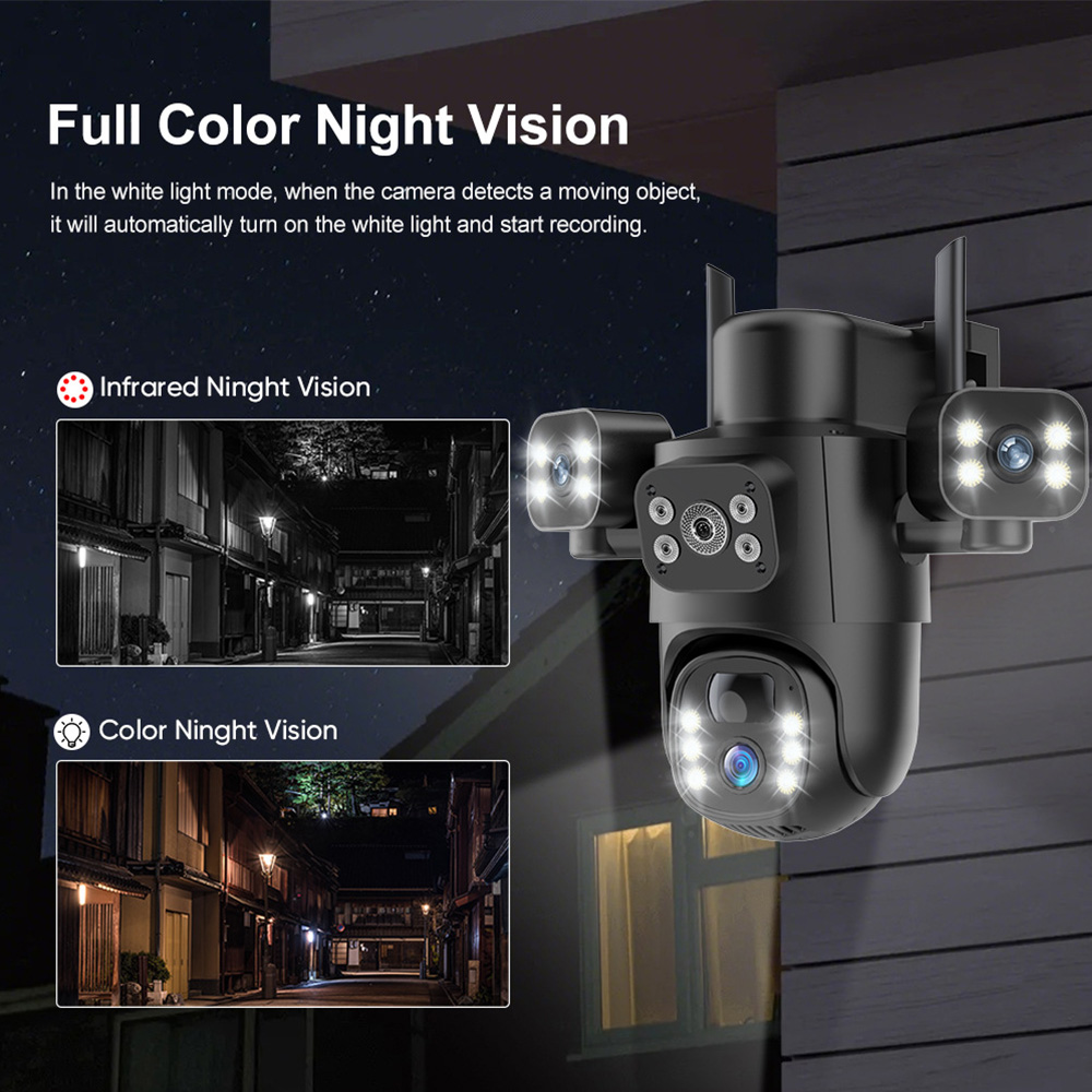 - Triplă lentilă 4mm + 4mm + 4mm – acoperire extinsă și detalii clare, cu rezoluție de 2MP × 3.