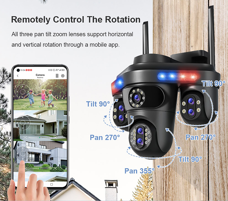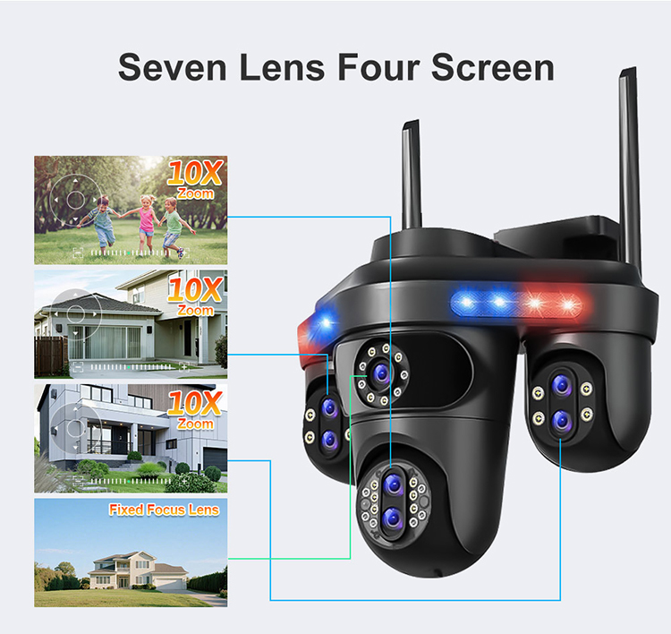 Cameră Supraveghere ValVirtalex® 4MP – Triple-Lens, Zoom 10X, WiFi + LAN, Vedere Nocturnă Color