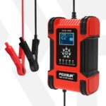 Încărcător baterie auto inteligent Foxsur 12V 12A / 24V 6A cu tehnologie smart în 7 trepte, compatibil AGM, GEL, plumb-acid și LiFePO4. Dispune de funcție Repair pentru regenerarea bateriilor descărcate, protecție la scurtcircuit și polaritate inversă, detectare temperatură și ecran LCD pentru monitorizarea încărcării. Ideal pentru autoturisme, motociclete și baterii deep cycle.