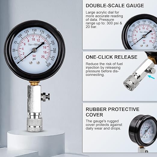 Setul permite măsurarea exactă a presiunii din fiecare cilindru, ajutând la identificarea rapidă a supapelor defecte, segmentilor uzați sau garniturilor compromise. Este compatibil cu majoritatea motoarelor pe benzină, fiind ideal pentru autoturisme, motociclete, ATV-uri și scutere.